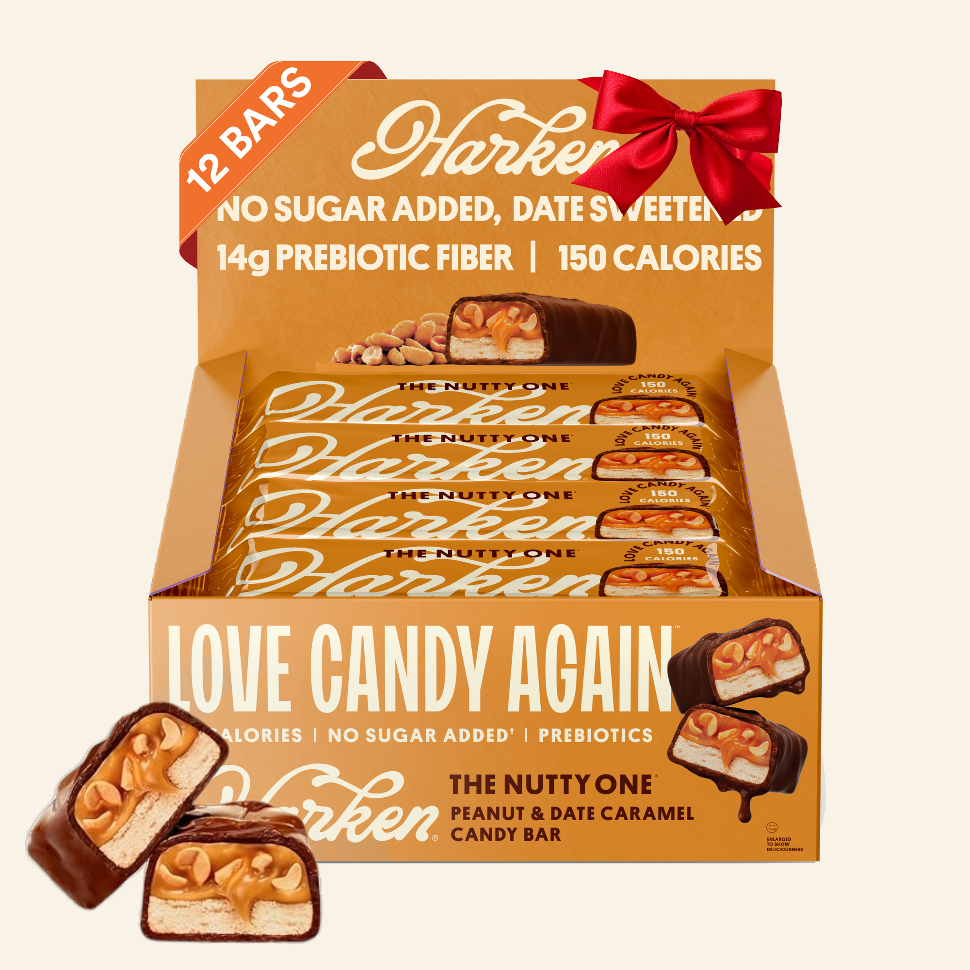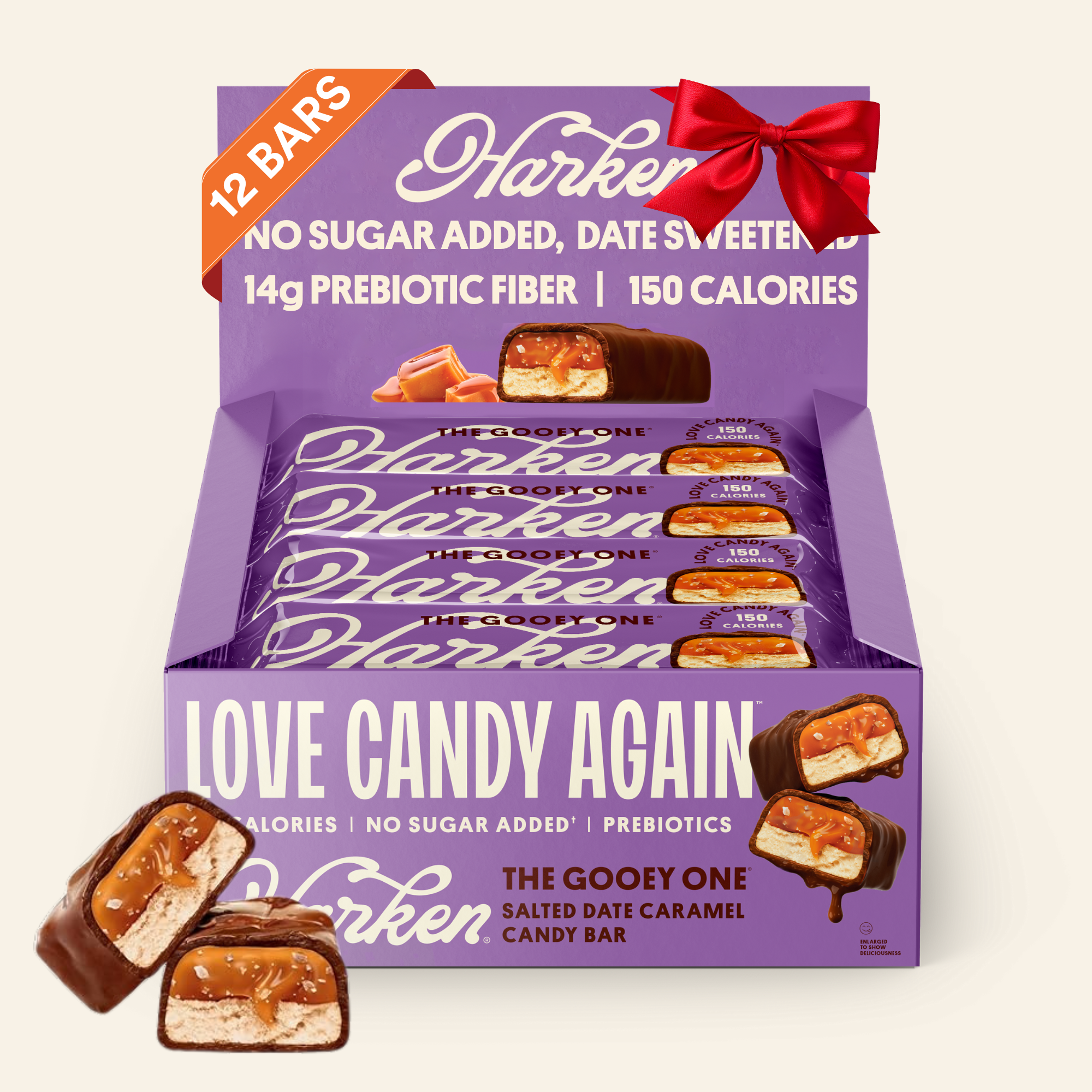 Harken lets you *harken* back to those childhood candy moments, but this time, you’re indulging in a treat that nourishes your body, too. Each candy bar is packed with 13g of gut-loving prebiotic fiber, plant-based ingredients, and absolutely no added sugar—all at just 150 calories.